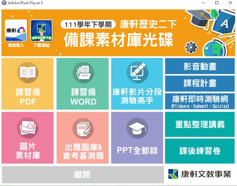 111學年下學期 國中 康軒版 歷史備課資料庫 2年級(含課本、卷類資源、備課用書、習作含解答、教學輔助資源)教學光碟