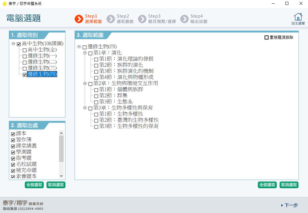 111學年下學期 高中命題光碟 泰宇版 生物科(全、選修一、選修二、選修三、選修四)(108課綱)題庫光碟