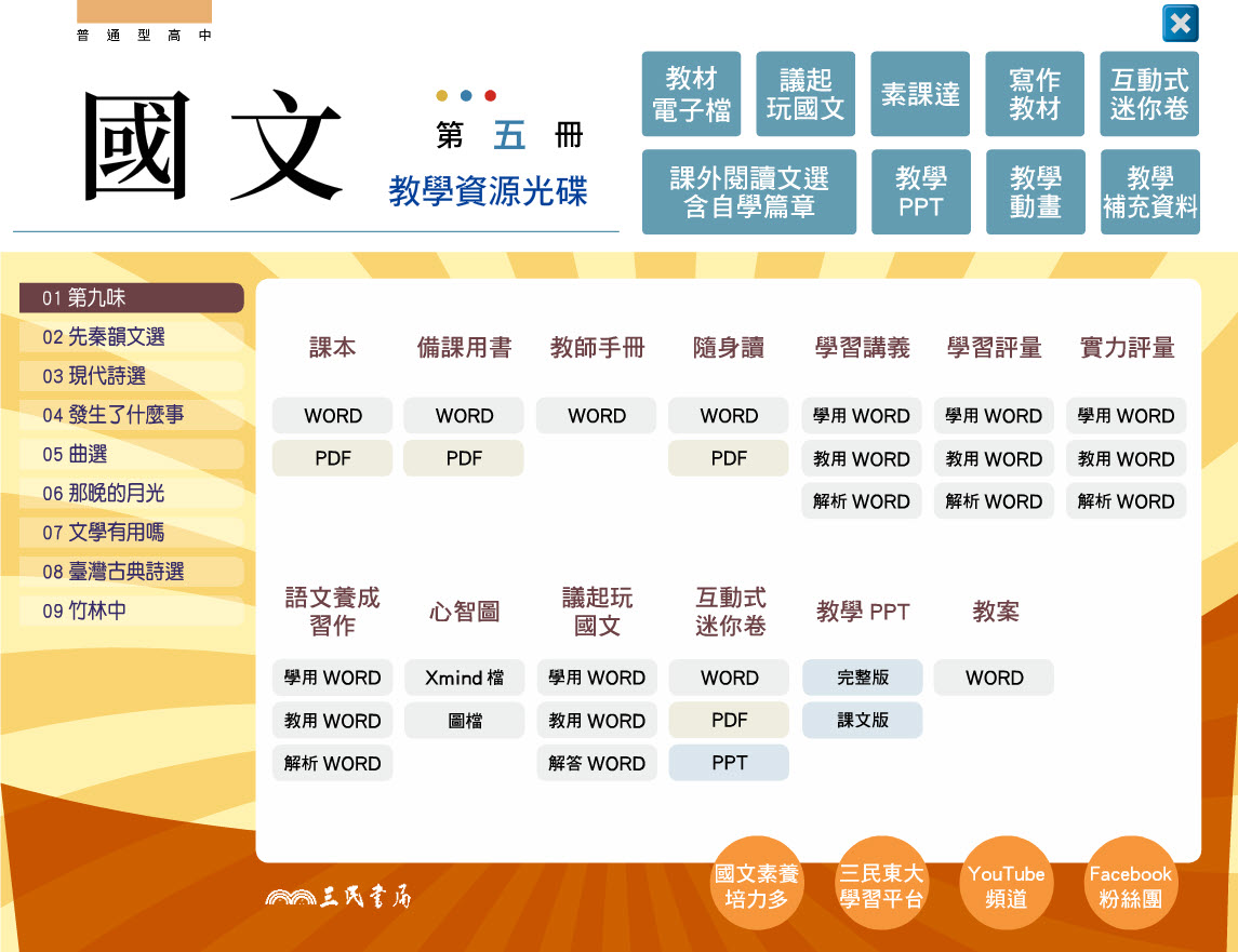 高中 三民版 國文科 3年級 教學光碟