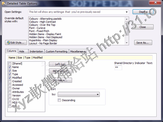 可以自訂輸出的樣式是否包含檔案名稱、大小、日期,並提供有多種的檔排列序方式。