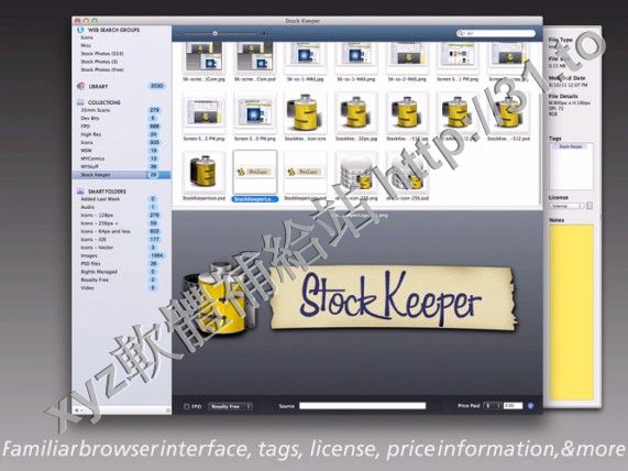 Use Stock Keeper to find, organize, and use your digital media