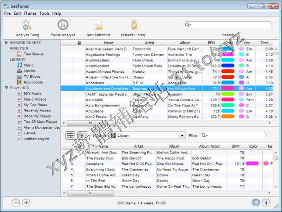 應用元件。該軟體可以分析 BPM(每分鐘的節拍),歌曲開頭和結尾靜音以及彩色(根據音