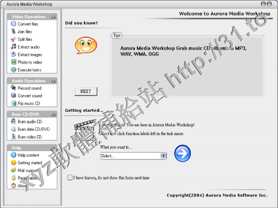 Aurora Media Workshop 是一款多媒體編輯軟體,包括了音頻,視頻和CD 3 種功能,可以轉