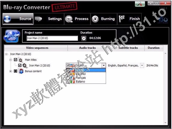1)選擇藍光視頻和音頻和字幕選擇音軌